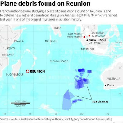 da Reunião, junto ao local onde ontem foi encontrada parte de uma asa de um
