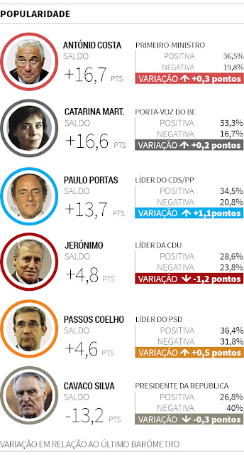 revela uma quebra eleitoral de 0,3% no PS. Já Pedro Passos Coelho é o mais